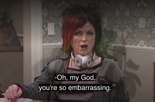 This episode was brought to you by Amy Poehler’s incredible Emo Mom character from this past week’s SNL.
